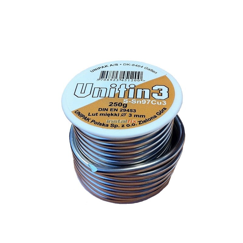 Lut miękki (cyna, spoiwo) przeznaczony do lutowania kształtek i rur miedzianych.