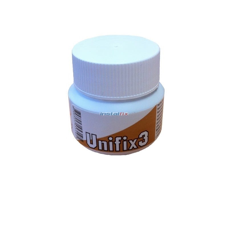 Unifix 3 pasta bieląca z cyną do lutowania miękkiego do miedzi, brązu i mosiądzu, w plastykowym pojemniku z pędzelkiem.